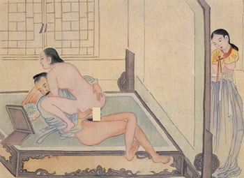 春宫画不仅是为性指导或消遣而作,而且也被用作护身符。性交代表处于顶点给人生命的阳气,在中国古代,画有性交的图画据说可以驱走代表黑暗的阴气。